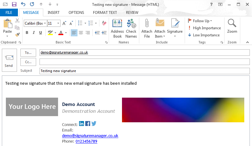 Because Outlook destroys the source code when you import an email signature on Windows things become tricky and you will need to import it manually. This can be a challenge but by following this guide you will have your new template installed and working correctly.